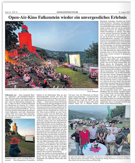 Die diesjährige Jahreshauptversammlung findet am Mittwoch, 02. April 2025, um 19:30 Uhr im Vereinsheim des MGV (Alt Falkenstein 15, 61462 Königstein) statt. Alle Mitglieder und Freunde des Heimatverein Falkenstein sind sehr herzlich dazu eingeladen.